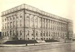 The United States District Court for the District of Iowa was established on March 3, 1845. It was divided into the Northern and Southern Districts on July 20, 1882.[2] Des Moines became the headquarters for the Southern District and in 1902 there were discussions that the riverfront would be a suitable location for a new Federal Courthouse. While other sites were considered in 1913 when funds were allocated for a new courthouse, the riverfront was still the desired location. Property was purchased in 1918, but there was a desire for more land so construction was delayed until it was purchased in 1926. The building was designed by and constructed under the direction of the Office of the Supervising Architect under James A. Wetmore.[3] The courthouse joined other buildings in a Civic Center district that flanks the Des Moines River. Their placement reflects the City Beautiful Movement, which upheld the notions of civic patriotism, urban economics and beauty.[3]
