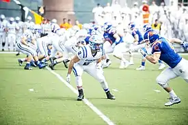 The USMMA Mariners compete in Division III of the NCAA, as a member of the Skyline Conference in all sports (men's sports include baseball, basketball, cross country, lacrosse, soccer, swimming & diving, tennis, and track & field; women's sports include basketball, cross country, lacrosse, swimming & diving, track & field, and volleyball) except in football, where they are an associate member of the New England Women's and Men's Athletic Conference, and collegiate wrestling, where they are a member of the Centennial Conference. The USMMA was a member of the Skyline Conference until the 2006–07 season; the USMMA returned to the Skyline Conference for the 2016–17 academic year. The academy was also a charter member in the Landmark Conference from 2007 until 2016.[21]