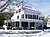 The Superintendent's quarters (1820) and the Commandant's quarters (1821) were constructed on the end of Jefferson Place near the intersection with Washington Road. During the 1800s, Jefferson Road extended further south through what is now North Area and a row of officers' quarters once lined the west side of the road south of the Superintendent's quarters, but those structures were all demolished to make room for the old North Barracks. The next oldest structures on post are the three sets of large duplex officers' quarters just off the northwest edge of the plain. These quarters (c1828), have been expanded over the years and have come to be known as Professor's Row, as they traditionally house the heads of the academic departments. The Dean's quarters were constructed in 1856 between the commandant's quarters and professor's row.[13] A complex of structures known as the "Ordnance Compound" was completed between 1837 and 1840. It consisted of three stone buildings with two towers encircled by a wall. The building that stands in the center of the compound, now the First Class Cadet's social club, was added in 1880.[18] The second academic building was demolished in 1891 and replaced on the same location by what was then known as the West Academic Building. This Richard Morris Hunt designed structure took four years to complete and served as the main academic hall until 1950, when it was converted into a barracks and renamed Pershing Barracks. The large house on the end of Professor's Row, known today as the "Beat Navy House" due to the "Beat Navy Sign" that hangs on its front porch, was built in 1875 and has been used as multiple officer's quarters since its construction.[15] In 1894, McKim, Mead, and White designed and began construction on the new memorial hall, later named Cullum Hall after General George W. Cullum, who started the Cullum Register of Graduates and donated the funds for the structure. Completed in 1898, Cullum Hall broke several architectural traditions. First its classical design and white marble construction clashed with the gray granite Gothic design of the other buildings on the plain. Second, it obstructed the eastern view of the Hudson River.[19] Started in 1900 and completed in 1903, the West Point Officer's Club also was of neo-classical design. However, budget cuts and the high cost of white marble resulted in the selection of an off-color white brick, a design that failed to inspire the imagination of the public at large and the academy leadership. These two structures are the only neo-classical designs left in the cadet area now that the old cadet chapel is moved to the cemetery.[20]