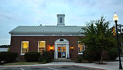 US Post Office-Christiansburg is a historic post office building located at Christiansburg, Montgomery County, Virginia. It was designed and built in 1936, and was designed by the Office of the Supervising Architect of the Treasury Department under Louis A. Simon. The one-story, five-bay, brick building is in the Colonial Revival style. It features a denticulated cornice and a standing-seam metal, gabled roof surmounted by a small, flat-roofed cupola. The interior features a Works Progress Administration sponsored mural by Paul DeTroot, depicting local events of the French and Indian and Revolutionary wars.[3]
