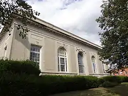 Dover's main post office occupies an entire city block in its downtown area, bounded by Washington, Green, Fayette, and Chestnut Streets. The building has three parts: the original 1911 main building, a large addition on the north side, and an expanded loading dock on the west side. The main portion of the building, a single-story beige brick Beaux Arts structure, was designed by James Knox Taylor and completed in 1911. The original main entrance, facing Washington Street, has been closed off, and some of the building's original features (such as stone parapet and the original front steps with lampposts) have been removed.[2]