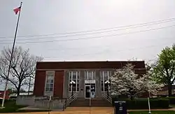 Fredericktown United States Post Office is a historic post office building located at Fredericktown, Madison County, Missouri. It was designed by the Office of the Supervising Architect under Louis A. Simon and built in 1936–1937. It is a one-story, rectangular, WPA-Moderne style red brick and limestone building. It measures approximately 64 feet by 68 feet and features an elaborated raised entrance within an ashlar enframement of pilasters and tall, complex windows. The lobby has a Treasury Section of Fine Arts mural by Missourian James Baare Turnbull titled, "The Lead Belt," installed in 1939.[2]: 5