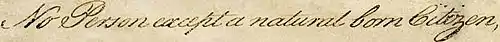 Article Two of the Constitution stipulates that for a person to serve as president, the individual must be a natural-born citizen of the United States, at least 35 years old, and a resident of the United States for a period of no less than 14 years. A candidate may start running their campaign early before turning 35 years old or completing 14 years of residency, but must meet the age and residency requirements by Inauguration Day.[20] The Twenty-second Amendment to the Constitution also sets a term limit: a president cannot be elected to more than two terms.