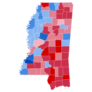 Mississippi was won by Governor George W. Bush with a double-digit margin of victory of 16.92%. Bush won most of the counties and congressional districts of the state. Bush dominated the east part of the state and Gore did well in the west. As of the 2020 presidential election, this is the last election in which Jasper County voted for the Republican candidate and the last election in which Yalobusha County voted for the Democratic candidate. This is also the last election in which Mississippi voted to the right of neighboring Alabama. Bush became the first Republican to win the White House without carrying Adams or Hinds Counties since Richard Nixon in 1968.