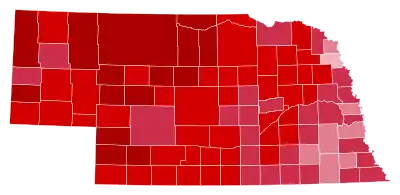 Nebraska was won by Governor George W. Bush by a 29% margin of victory, winning every county. Also, with 62.25% of the popular vote, the state proved to be his fourth strongest state in the 2000 election after Wyoming, Idaho and Utah.[1] As of the 2020 presidential election, this is the last time the Democratic ticket did not win a single county in Nebraska.