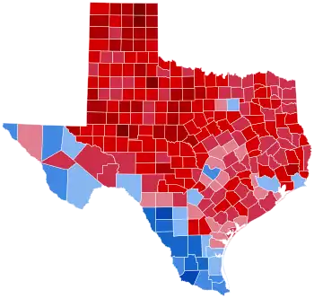Despite the expected loss, Obama improved substantially upon John Kerry's performance in 2004, narrowing the margin of victory from 22.83% down to 11.77%. He was able to flip major urban counties such as Dallas, Bexar and Harris counties—home to the cities of Dallas, San Antonio, and Houston respectively. Dallas and Harris had been among the first areas of the state to turn Republican, largely due to an influx of Northern expatriates in the 1940s and 1950s. Neither county had supported a Democrat for president since 1964. Bexar had last gone Democratic in 1996.[21] A strong turnout of minority voters gave Obama the edge in these three counties. Obama also performed strongly in Travis County, which contains the state capital and liberal bastion of Austin; El Paso County, which contains the city of El Paso, due in large part to heavy support by Hispanics; and many of the Latino-majority counties in the Rio Grande Valley along the border with Mexico, which have strongly supported Democrats for decades. Although Obama lost Tarrant county, he did do well in the southern and eastern parts of Fort Worth and the eastern part of Arlington.[22]