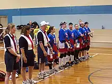 ![]() United States women's goalball team. Goalball World Championships, Spartanburg, South Carolina, USA (July 2006). | |
