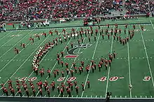 The Marching Band usually consists of these numbers. The Pep Bands for Men's Basketball and Women's Basketball games are divided into fourths.