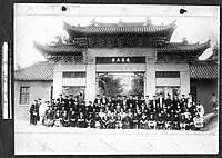 Imperial Shandong University occupied the premises of the Luoyuan Academy which had been renovated and extended significantly five years earlier. It was opened on November 13, 1901, in a ceremony attended by Governor Yuan Shikai.[20] 299 student were enrolled in the first term,[20] of which 120 passed the first examination and 100 were finally admitted.[20] The first faculty had 50 members that also included teachers from overseas,[7] it was later increased to 110. The curriculum contained Chinese classics, Chinese history, social sciences, natural sciences, and foreign language[7] with more than 20 subjects being taught.[7] At the beginning, the curriculum covered 3 years, but it was later expanded to 4 years.[7]