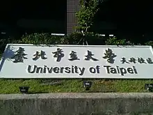 University of Taipei (UT; Chinese: 臺北市立大學; lit. 'Taipei Municipal University') is an institution of higher education in Taipei, Taiwan. Located in Taipei metropolitan area, the university has two campuses, the Tianmu Campus in Shilin District and the Bo'ai Campus in Zhongzheng District. It is the only university under the administration of Taipei City Government.[2]