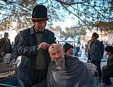 The term "Uyghur" was not used to refer to a specific existing ethnicity in the 19th century: it referred to an 'ancient people'. A late-19th-century encyclopedia entitled The Cyclopædia of India and of Eastern and Southern Asia said "the Uigur are the most ancient of Turkish tribes and formerly inhabited a part of Chinese Tartary (Xinjiang), now occupied by a mixed population of Turk, Mongol and Kalmuck".[83] Before 1921/1934, Western writers called the Turkic-speaking Muslims of the oases "Turki" and the Turkic Muslims who had migrated from the Tarim Basin to Ili, Ürümqi and Dzungaria in the northern portion of Xinjiang during the Qing dynasty were known as "Taranchi", meaning "farmer". The Russians and other foreigners referred to them as "Sart",[84] "Turk" or "Turki".[85][note 4] In the early 20th century they identified themselves by different names to different peoples and in response to different inquiries: they called themselves Sarts in front of Kazakhs and Kyrgyz while they called themselves "Chantou" if asked about their identity after first identifying as a Muslim.[86][87] The term "Chantou" (纏頭; Ch'an-t'ou, meaning "Rag head" or "Turban Head") was used to refer to the Turkic Muslims of Xinjiang,[88][89] including by Hui (Tungan) people.[90] These groups of peoples often identify themselves by their originating oasis instead of an ethnicity;[91] for example those from Kashgar may refer to themselves as Kashgarliq or Kashgari, while those from Hotan identity themselves as "Hotani".[87][92] Other Central Asians once called all the inhabitants of Xinjiang's Southern oases Kashgari,[93] a term still used in some regions of Pakistan.[94] The Turkic people also used "Musulman", which means "Muslim", to describe themselves.[92][95][96]
