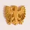 The coat of the arms of the Värmland Regiment (I 2/Fo 52) 1977–1994 and the Värmland Brigade (IB 2) 1994–2000. Blazon: "Argent, the provincial badge of Värmland, an eagle azure, wings elevated and displayed, armed and langued gules. The shield surmounted two muskets in saltire, or".[5] The coat of the arms of the Värmland Regiment (I 2/Fo 52) 1994–2000 and the Värmland Group (Värmlandsgruppen) 2000–2004. Blazon: "Argent, the provincial badge of Värmland, an eagle wings elevated and displayed azure, armed and langued gules. The shield surmounted two swords in saltire, or".[5]