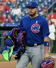 On July 31, 2015, the Braves traded Caratini to the Chicago Cubs for Emilio Bonifacio and James Russell.[2][3][4] The Cubs sent him to the Kane County Cougars, where he finished the season.[5][6] Caratini spent the 2015 season with the Myrtle Beach Pelicans where he batted .257, with four home runs and 53 runs batted in. He spent the 2016 season with the Tennessee Smokies, where be batted .291 with six home runs and 47 runs batted in.[7] After the 2016 season, Caratini played for the Mesa Solar Sox of the Arizona Fall League and was added to the Cubs 40-man roster.[8]