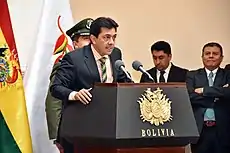 In the final year of Zamora's term, the Senate's second vice presidency was meant to be headed by the PDC caucus. However, as legislators negotiated the distribution of positions on the Senate's directorate, Zamora opted to chair the Second Secretariat given its broader powers, allowing retiring Senator Jeanine Áñez to assume the second vice presidency, an office considered "boring" and largely "irrelevant". The last-minute change in portfolios ultimately precluded Zamora from assuming the presidency of the country just over ten months later.[19][20] On 10 November 2019, amid nationwide protests sparked by accusations of electoral fraud, President Evo Morales resigned, followed in quick order by his vice president and the presidents of the Senate and Chamber of Deputies. Given the vacuum of power, Áñez proclaimed herself next in the line of constructional succession, citing her role as second vice president of the Senate to validate the claim.[21]