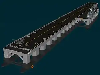 Very large floating structures (VLFSs) or very large floating platforms (VLFPs) are artificial islands, which may be constructed to create floating airports, bridges, breakwaters, piers and docks, storage facilities (for oil and natural gas), wind and solar power plants, for military purposes, to create industrial space, emergency bases, entertainment facilities (such as casinos), recreation parks, mobile offshore structures and even for habitation. Currently, several different concepts have been proposed for building floating cities or huge living complexes.[1] Some units have been constructed and are presently in operation.[2]