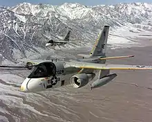 After another deployment in the West Pacific on the Kitty Hawk in 1975,[1] the squadron retired the S-2G Tracker and beginning the transition to the newer jet powered Lockheed S-3A Viking.[3] Between April 4 and October 30, 1978, VS-38 made a deployment on USS Enterprise (CVN-65) as part of CVW-14 which included operating the US-3A COD (Carrier On-board Delivery) Viking. This followed by two cruises on the USS Constellation (CV-64) as part of CVW-9 in 1980 and between late 1981 and early 1982.