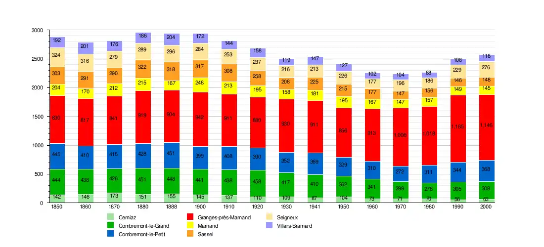 The villages of Cerniaz, Combremont-le-Grand, Combremont-le-Petit, Granges-près-Marnand, Marnand, Sassel, Seigneux and Villars-Bramard merged on 1 July 2011 into the new municipality of Valbroye.[3]