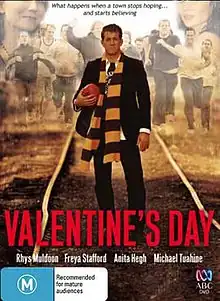 Valentine's Day is an Australian comedy film made in 2007 by the Australian Broadcasting Corporation[1] with support of Film Victoria. Directed by Martin McGrath, it was first shown on TV on 6 July 2008.[2] The main character, Ben Valentine (played by Rhys Muldoon), visits the small Victorian country town of Rushworth and is mistaken for a champion footballer of the same name. The canny local magistrate sentences him to 200 hours of community service, to be served coaching the town's team, the Bears.[3]