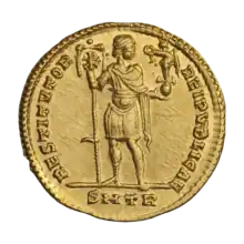 ![]() Solidus of Valentinian marked: d·n· valentinianus p·f· aug· | |||||
