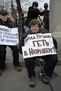 ![]() Valeriya Novodvorskaya on a rally in Bolotnaya Square, Moscow, 2010 | |
