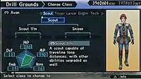 Also similar to the original, the characters available for use by the player each occupy a specific class - an exception is the main character Avan who can freely move between classes. Valkyria Chronicles II features new class types and the ability of units to change their class based on a branching tree of upgrades.[6][7] All five original classes from Valkyria Chronicles reappear, some with slight modification. Scouts, Shocktroopers, Engineers,[8] and Lancers act as the base units that lead to more powerful and specialized promotions. Snipers, rather than being a starting class, are a part of the Scout's upgrade potential. The final base class is new to the series. The Armored Tech class can disarm mines and carry large shields that can deflect rifle and machine gun fire.[9] Armored soldiers do not carry a firearm, instead wielding a hammer to strike enemies. From these five base unit classes, individual units can use experience earned from completing missions to move into more advanced forms. Advantages garnered from upgrading class range from new weapon types to increased effectiveness against tanks to special abilities. The player has access to a tank. The tank has an increased amount of customization potential, being able to increase its firepower and armor, or be stripped down into a simple armored car.