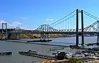 The Carquinez Bridge spans the Carquinez Strait, connecting Vallejo (left) to Contra Costa (right).