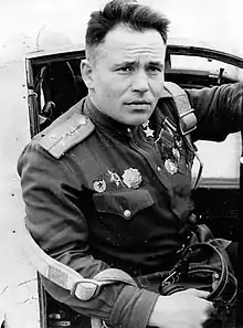 Vasily Pavlovich Mikhalyov (Russian: Василий Павлович Михалёв; 20 March 1917 — 10 December 2006) was a Soviet fighter pilot during World War II. Awarded the title Hero of the Soviet Union on 1 July 1944 for his initial victories, he totaled over 20 solo aerial victories including an aerial ramming during the war, although the exact tally is subject to some dispute.[1][2]