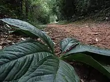 The main attraction of the park is a giant jequitibá-rosa tree in the well-preserved cerrado of the 900 hectares (2,200 acres) Pé de Gigante section, which takes its name from a great depression in the interior shaped like a giant's foot.[2] The tree, called "O Patriarca" (The Patriarch), is estimated to be 600 years old based on comparison to a neighboring jequitibá whose rings were counted and whose trunk was studied using carbon 14 dating, which gave an age of 400 years. O Patriarca is larger and has a thicker trunk, from which the age of 600 years is estimated.[4][lower-alpha 1] It is 3.6 metres (12 ft) in diameter, 40 metres (130 ft) high and has a circumference of 11.5 metres (38 ft). Its deepest root goes down to 18 metres (59 ft) and its longest extends 30 metres (98 ft) to the side. Its gross weight has been estimated at 264 tons.[2] The park holds about 330 specimens of this rare and imposing tree species.[7]