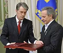 ![]() Zinkevych (right) in 2009, receiving his Hero of Ukraine award | |