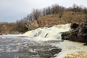 The Vchelka waterfall is located on the Gnylopiat' River in the Zhytomyr Raion, Zhytomyr Oblast, Ukraine, between the villages of Singury, Golovenka and Perlyavka. The waterfall is 10 metres (33 ft) high and about 40 metres (130 ft) wide.