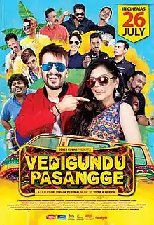 Vedigundu Pasangge is a 2018 Malaysian Tamil language crime comedy film .[1] It was the final instalment of Pasangge trilogy film series after Vilayaatu Pasange (2011), and Vetti Pasanga (2014). Vimala Perumal directed the movie with an ensemble cast including Sangeeta Krishnasamy, Denes Kumar, David Anthony, and Thangamani Velayuda. Music and background music were scored by composer duo Vivek–Mervin.