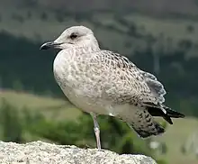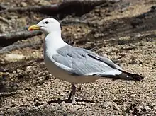 The Vega gull, East Siberian gull, or East Siberian herring gull (Larus vegae) is a large gull of the herring gull/lesser black-backed gull complex which breeds in Northeast Asia. Its classification is still controversial and uncertain. It is variously treated as a separate species, as a subspecies of the American herring gull (L. smithsonianus) or included with both the American herring gull and European herring gull in L. argentatus. The Mongolian gull, Larus mongolicus, has previously been regarded as a subspecies of the Caspian gull (L. cachinnans) but is now sometimes lumped with the Vega gull.