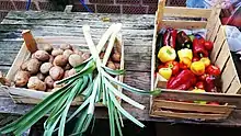 Storage can be short-term or long-term. Most vegetables are perishable and short-term storage for a few days provides flexibility in marketing. During storage, leafy vegetables lose moisture, and the vitamin C in them degrades rapidly. A few products such as potatoes and onions have better keeping qualities and can be sold when higher prices may be available, and by extending the marketing season, a greater total volume of crop can be sold. If refrigerated storage is not available, the priority for most crops is to store high-quality produce, to maintain a high humidity level, and to keep the produce in the shade.[36]
