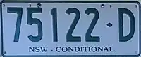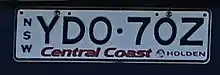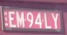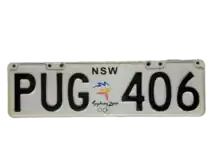 The Australian state of New South Wales requires its residents to register their motor vehicles and display vehicle registration plates.[1] Current regular issue plates are to the standard Australian dimensions of 372 mm (14.6 in) in length by 134 mm (5.3 in) in height, and use standard Australian serial dies.[2]