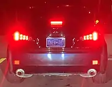 Early deterioration on a rear plate. The aluminum base is visible where the reflective layer has fallen off.
