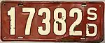 The U.S. state of South Dakota first required its residents to register their motor vehicles in 1905. Registrants provided their own license plates for display until 1913, when the state began to issue plates.[2]