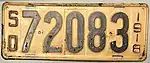 Coded by county of issuance (1 or 10) | Revalidated for 1943 with black tabs, and for 1944 with windshield stickers, due to metal conservation for World War II. |