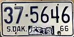 1966 | Embossed dark blue on reflective white with border line; "S.DAK.", stamped Mount Rushmore graphic and "66" at bottom | none | 1-12345 10-1234 |
