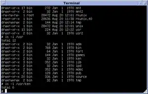 | Default user interface | Command-line interface (Thompson shell) |