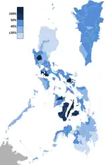 ![]() Map showing the official results taken from provincial and city certificates of canvass. The inset shows Metro Manila. | |||||||||||||||||||||||||||||||||||||||||||