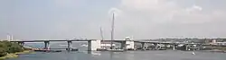 The Veterans Memorial Bridge is a bascule bridge connecting Somerset, Massachusetts and Fall River, Massachusetts. The bridge carries U.S. Route 6 and Route 138 over the Taunton River, with connecting ramps to Route 79, and includes a bike path on its north side. The $290 million bridge was dedicated to area veterans on September 11, 2011.[2] The bike path was also dedicated in a separate ceremony that same day in honor of Pvt. Michael E. Bouthot, who was killed in action in Iraq in 2006.[3]