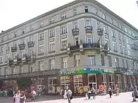 In 1904, the Gartenberg's Passage was built next to the park, and this building was preserved to our days. In 1960s, the Passage was rebuilt into a general department store, and later it became a department store for children. In 1990s, the building was renovated into an exhibition hall, that was later renamed to shopping mall "Malva". And in the 2010s, Passage Gartenberg was rebuild as a restaurant.[2]