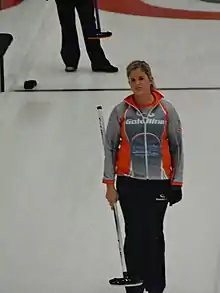 Victoria Elizabeth "Vicki" Chalmers[1] (née Adams) (born 16 November 1989) is a Scottish curler who was the long time second for Eve Muirhead. Representing Scotland, they won the 2013 World Championships and the European Championships in 2011 and 2017. Representing Great Britain, they are the 2014 Olympic bronze medallists[2] and finished fourth at the 2018 Winter Olympics.