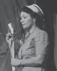 ![]() Vicki Garvin preparing to speak at the founding convention of the Harlem Trade Union Council, 1949 | |