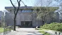 E.J. Pratt Library is the main library of Victoria University.[15] It was built in 1961 and is located at the south end of the quadrangle. The site of the library and the adjacent Northrop Frye Building was originally on the route of Queen's Park Crescent. The road was pushed south into Queen's Park to make way for the new buildings.