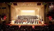 The Season 2009/2010 began with a concert tour to Japan, where Haydn's The Creation and Brahms’ Requiem were performed in the Izumi-Hall in Osaka. In honour of his 80th birthday, Nikolaus Harnoncourt again conducted the Singverein in a performance of Schmidt's Book with Seven Seals. On the occasion of his 85th birthday, Pierre Boulez conducted concerts with the Vienna Philharmonic and the Singverein; including the Song of the Night (Symphony Nr 3, op. 27) by Karol Szymanowski and Symphonie de psaumes by Stravinsky as well as the Glagolitic Mass (Glagolská mse) by Janáček. Further, for the first time the Singverein was brought in by Christian Thielemann to perform the Ninth Symphony in the complete cycle of the Beethoven symphonies with the Vienna Philharmonic. The Singverein also took part in the Vienna Summer Night’s Concert, which the Philharmonic gave in the park of the Schönbrunn Palace and was broadcast live on Austrian Radio and TV and internationally on 3Sat, singing the Moon Chorus from Otto Nicolai’s Merry Wives of Windsor. After two performances of Arthur Honegger’s Jeanne d’Arc au bucher, in Vienna and In the Linz Bruckner House – with the RSO under Bertrand de Billy, Johanna Wokalek, Peter Matic, Herbert Lippert and the Vienna Boys’ Choir – the Singverein made a guest appearance with this work in the Felsenreitschule at the Salzburg Festival. It was de Billy’s last concert as principal conductor of the RSO, Fanny Ardant played Jeanne. Later in August, the Singverein performed Mendelssohn’s Cantata, The First Walpurgis Night (MWV D3) at the Grafenegg Music Festival.
