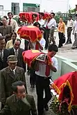 On the day of the wedding, the procession of the groom's family is led in specific order. The first person would be the representative of the groom's house followed by the groom's father, the groom, then the rest of his family and close friends. The number of people participating in the groom's procession varies but is usually restricted to a smaller number (20 or so). This typically makes it easier on the bride's family, who must receive all the guests in their home. If the groom's entourage is very small or small in comparison to the bride's, some of the male members of the bride's family may join on the other side to help out.