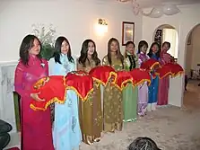Following the ceremony at the groom's house, all of the bride and groom's family and friends are invited to a reception that traditionally takes place at the groom's house.