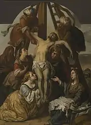 He received commissions to paint altarpieces for numerous churches and monasteries in the Westhoek region of Flanders which allowed him to make a good living. He was a member of the exclusive Sint-Sebastiaansgilde (Guild of Saint Sebastian) of Veurne and of the Jansenist-inspired Sodaliteit van de Gekruisigde Zaligmaker (Brotherhood of the Crucified Savior).[4] He married Maria van der Haeghen.[2]