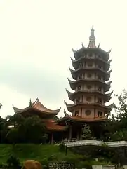 Pagoda Avalokitesvara (Pagoda Guanyin) is on the main path of the complex. Construction started in August 2004 and opened by July 14, 2005. This building is the tallest pagoda tower in Indonesia at 45 meters. The architecture follows the design of the main temple and represents Metta Karuna or love of Buddha.